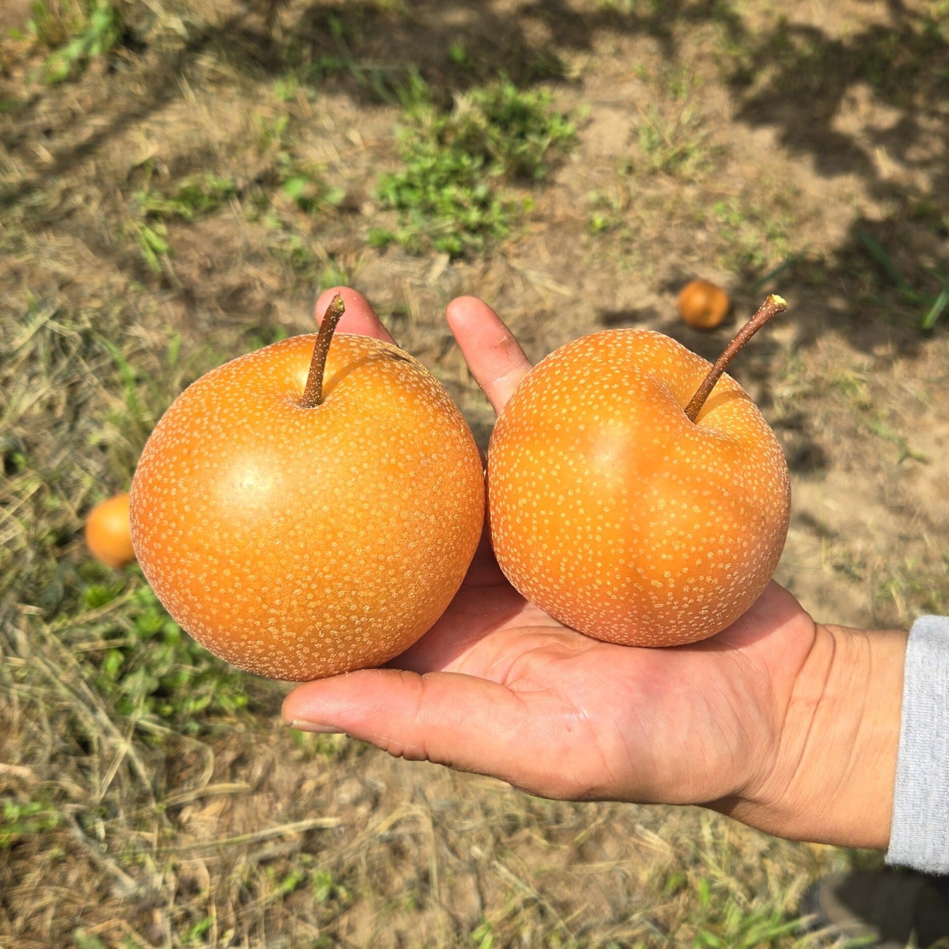 ・梨のサイズは、小さいサイズ(テニスボール位)から中くらいサイズ時には大サイズと収穫時に応じていろいろサイズで箱入れになります。キズ、スレ、日焼け、凸凹等ある訳あり梨が入ります。